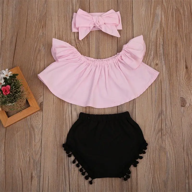 Pudcoco Newborn Baby Girl Clothes Set Off Shoulder Top T Shirt