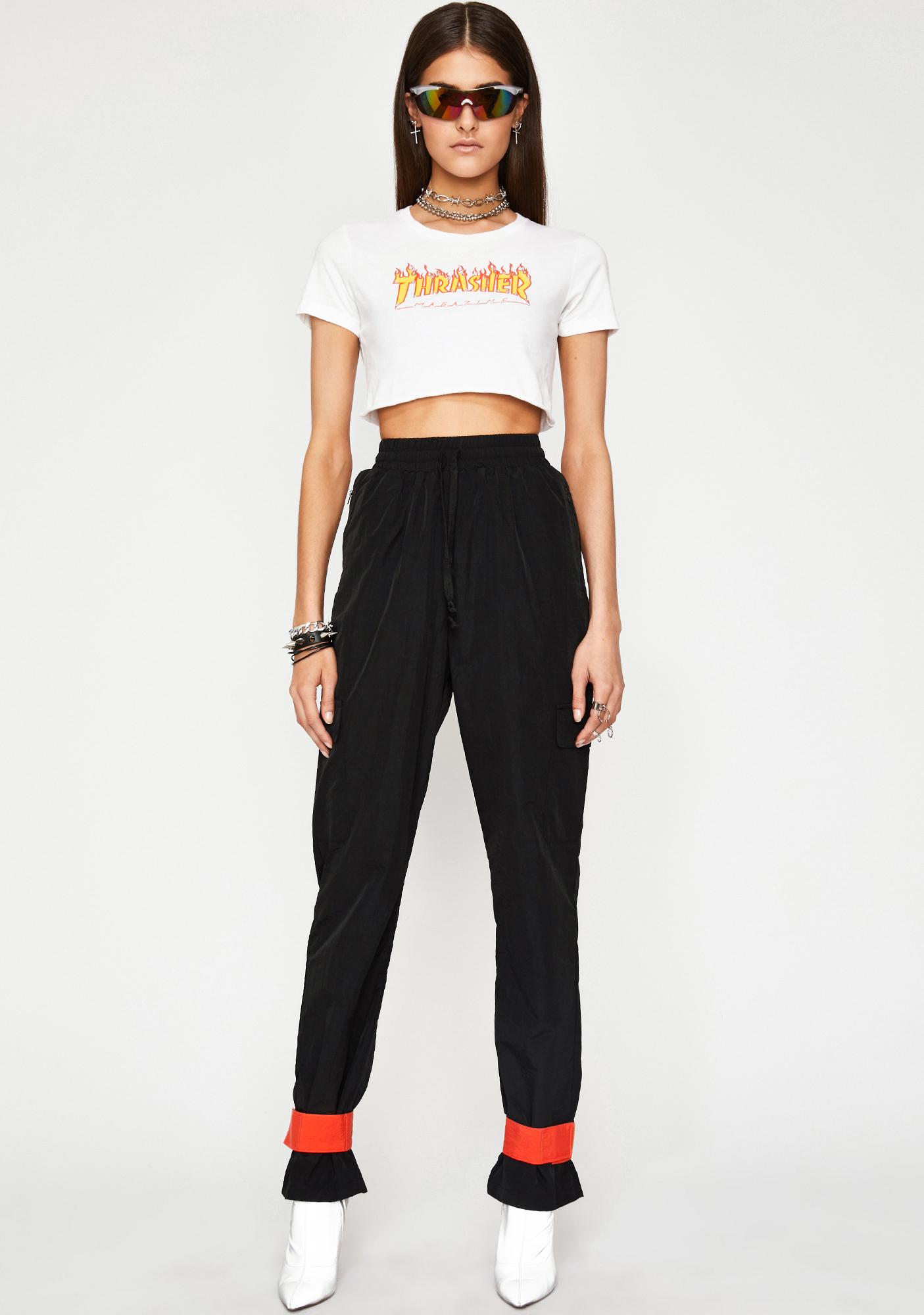 Track Pants With Neon Orange Cuff Straps Dolls Kill