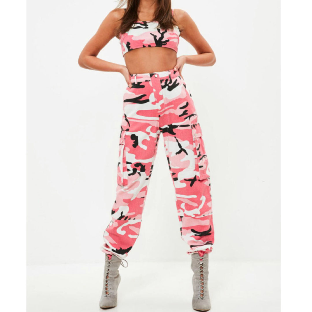 Baddie Colored Camo Pants Outfit