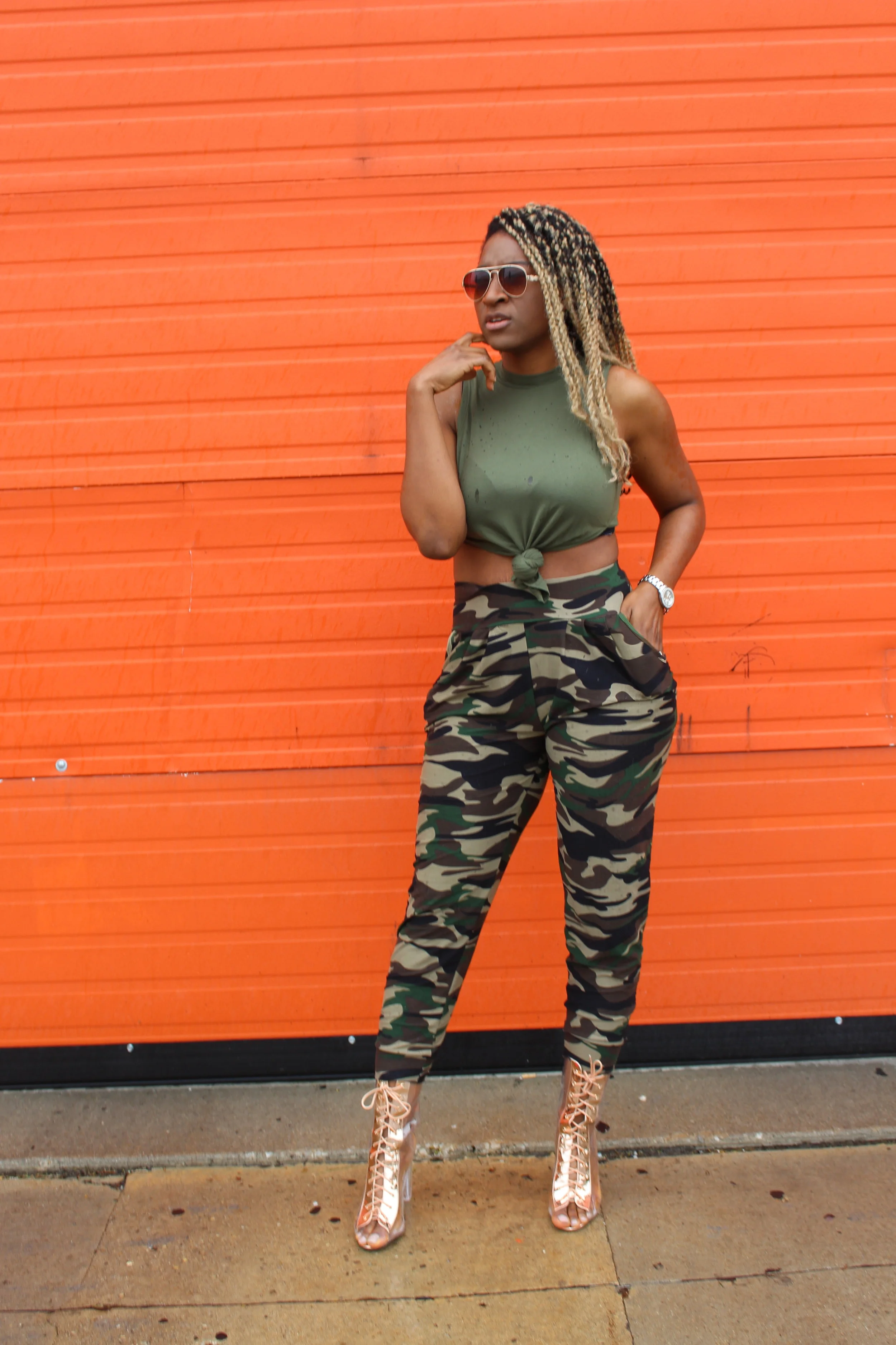 High Waisted Camo Pants Outfit Tumblr